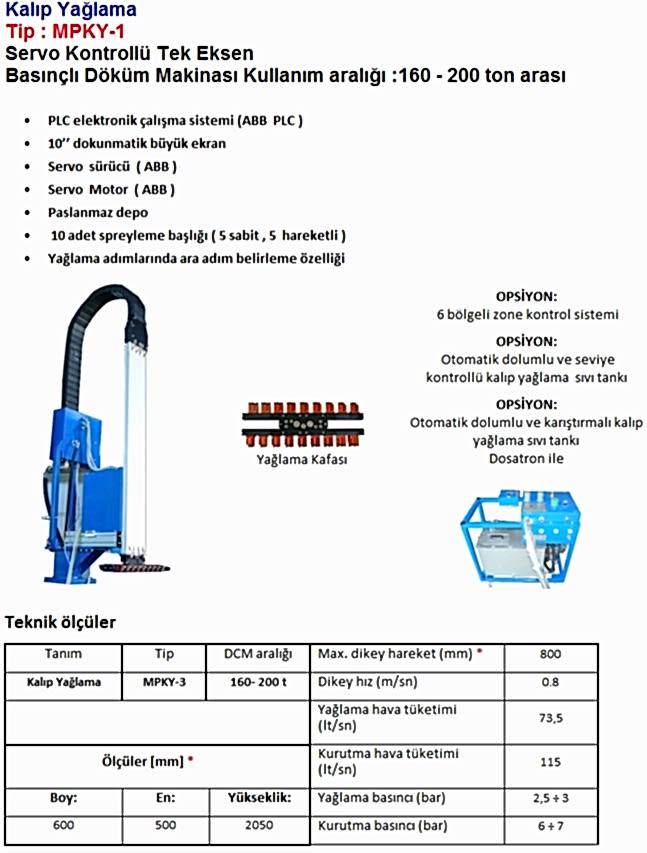 160-200 Ton Arası Makineler İçin Kalıp Yağlama