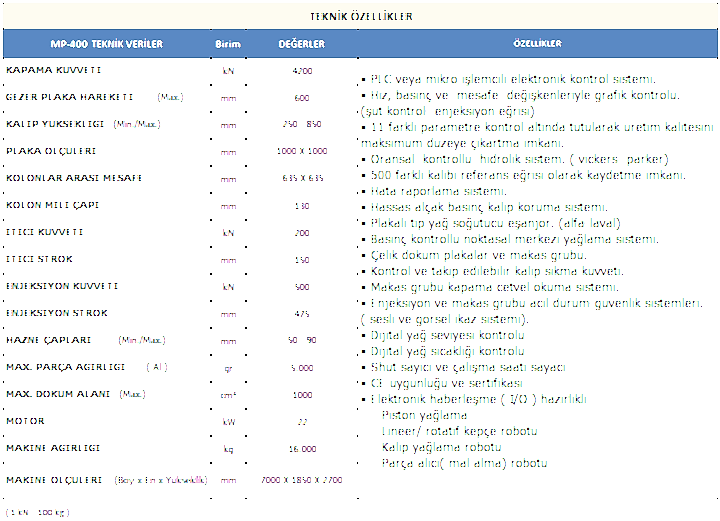 MP-400 TON METAL ENJEKSİYON PRESİMetal Enjeksiyon Makine ÇeşitlerimizMP-160 TON METAL ENJEKSİYON PRESİMP-200 TON METAL ENJEKSİYON PRESİMP-300 TON METAL ENJEKSİYON PRESİMP-400 TON METAL ENJEKSİYON PRESİMP-550 TON METAL ENJEKSİYON PRESİMP-750 TON METAL ENJEKSİYON PRESİMP-900 TON METAL ENJEKSİYON PRESİMP-1100 TON METAL ENJEKSİYON PRESİMP-1350 TON METAL ENJEKSİYON PRESİMP-1650 TON METAL ENJEKSİYON PRESİMP-2000 TON METAL ENJEKSİYON PRESİ GÖRÜNTÜ VE BOYUTLARI GÖRÜNTÜ VE BOYUTLARI (YENİ SİSTEM) KALIP BAĞLANTI ŞEMASI View the embedded image gallery online at:https://creativepaths.cfd/metal-pres-makina-urunler/metal-enjeksiyon-makinalari/mp-400-ton-metal-enjeksiyon-presi.html#sigProGalleria0448404c98