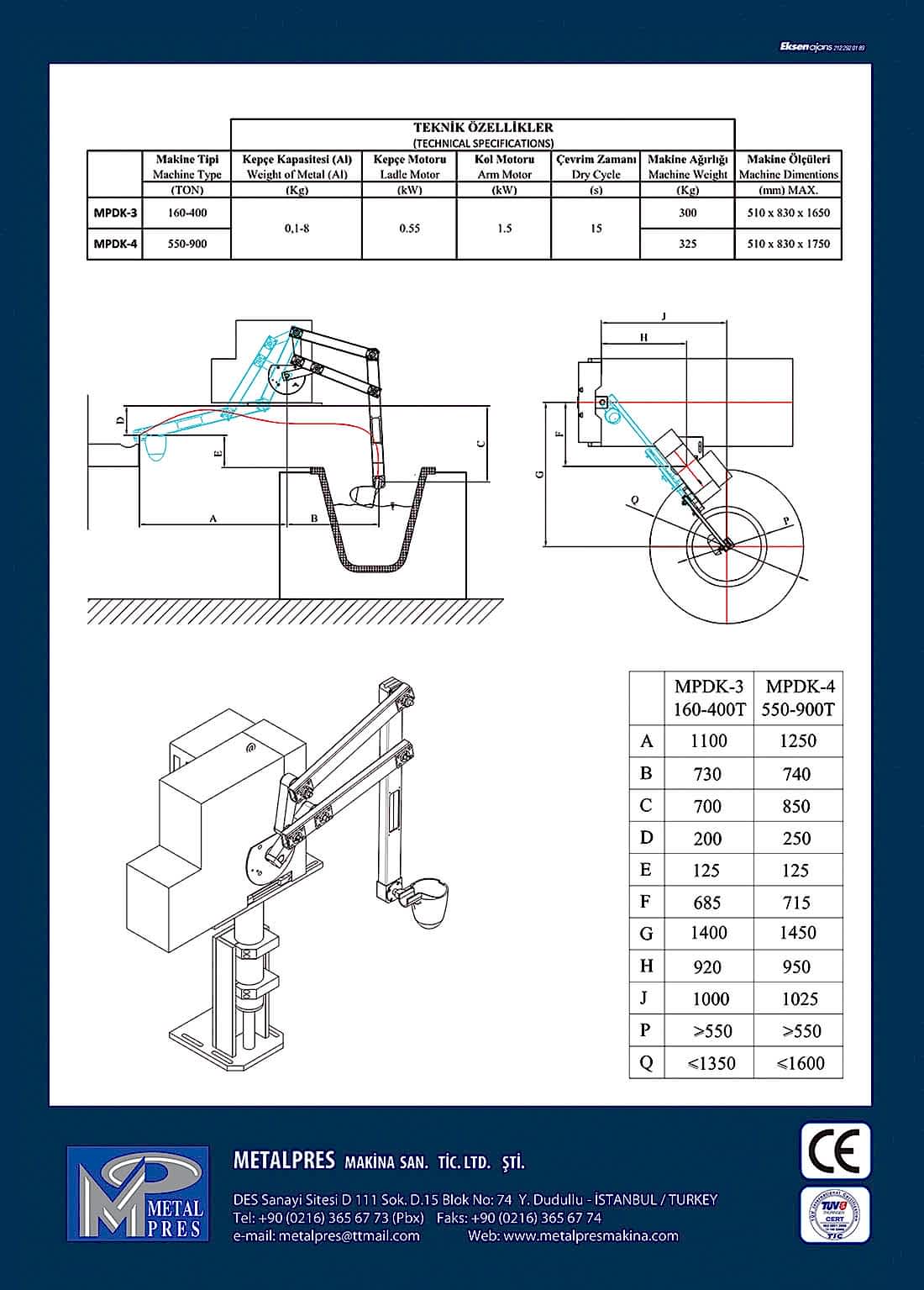 750-1100 Ton Arası Makineler İçin Lineer Kepçe